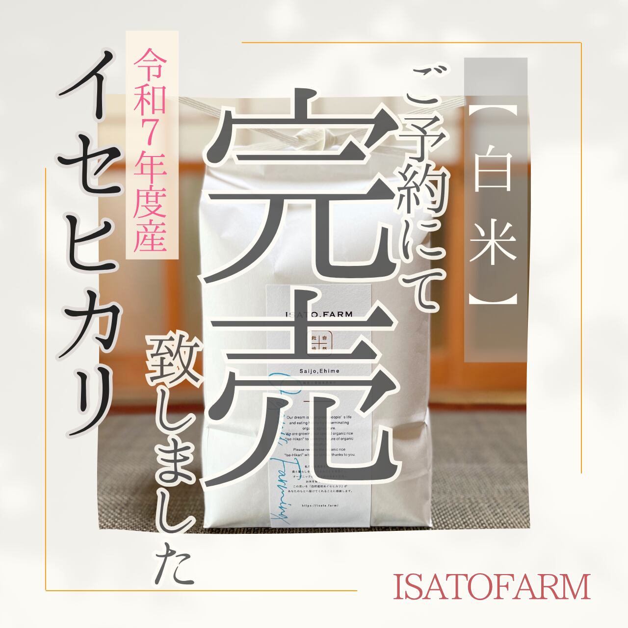 2025年5月、たった半日で販売予定数をオーバーし、あっという間に完売したISATOFARMの令和7年度産イセヒカリ。
